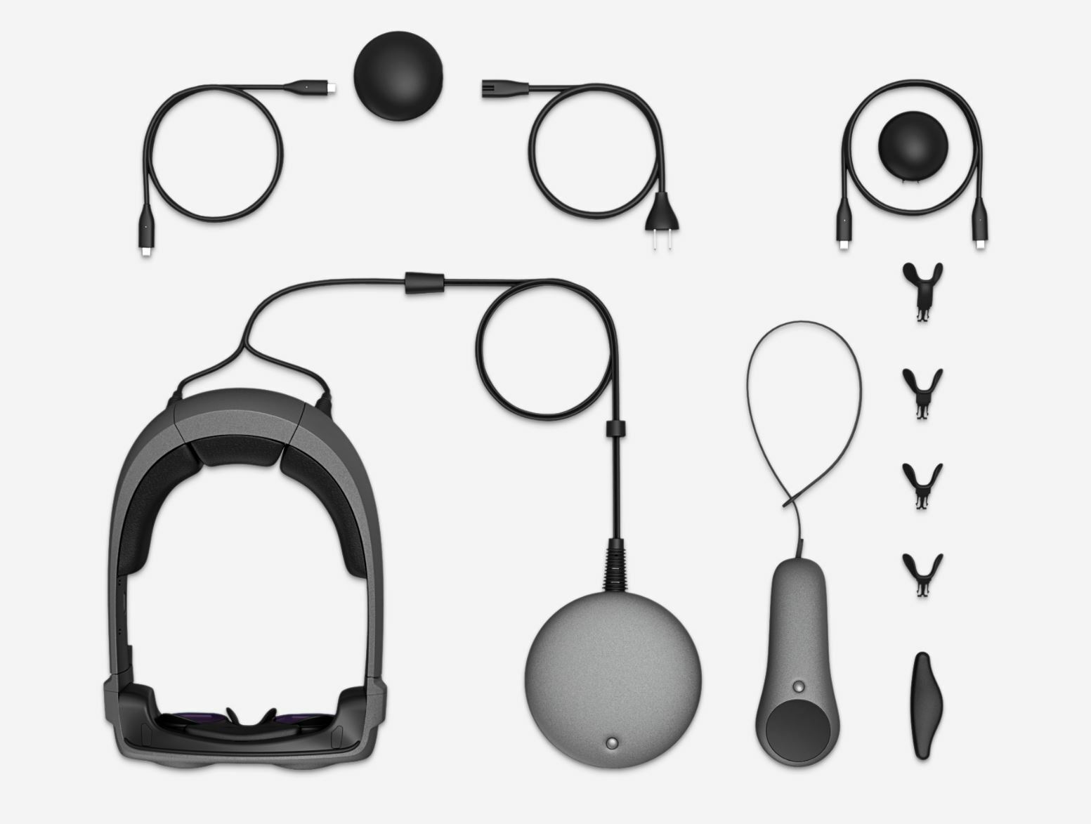 Очки Lightwear, Переносной ПК Lightpack и пульт управления. Зарядное устройство Lightpack, зарядное устройство для ПУ, кабель питания переменного тока, 2 кабеля USB-C, ремешок для запястья, чистящая ткань и набор Fit Kit с подушечками для носа и лба.